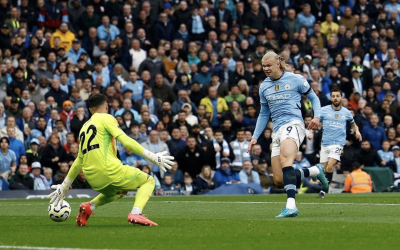 Không còn sử dụng “số 9 ảo” như trước, Pep giờ đã có Haaland – người luôn sẵn sàng ghi bàn từ mọi vị trí. Anh là mục tiêu cuối cùng trong mọi đợt lên bóng, thu hút hậu vệ và tận dụng khoảng trống để dứt điểm.