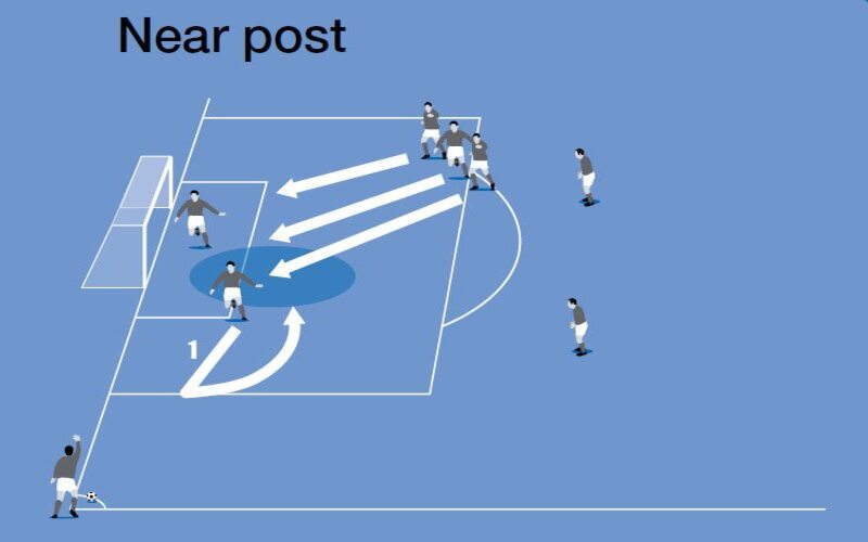 Một cầu thủ đón bóng ở cột gần đánh đầu hoặc chuyền nhẹ vào phía trong để đồng đội băng vào dứt điểm là chiến thuật thường thấy. Tình huống này có độ sát thương và hiệu quả cao tuy nhiên đòi hỏi sự phối hợp ăn ý giữa các cầu thủ trong đội hình.