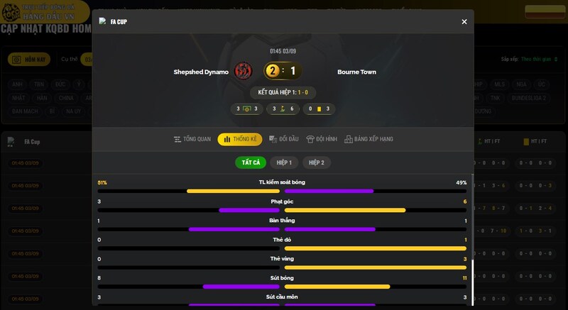 Từng thông tin về tỷ số, số bàn thắng, thẻ phạt, thay người hay thậm chí thống kê chuyên sâu đều được hiển thị rõ ràng. Nhờ vậy, dù không trực tiếp theo dõi trận đấu, bạn vẫn nắm được toàn bộ diễn biến quan trọng và kết quả cuối cùng.