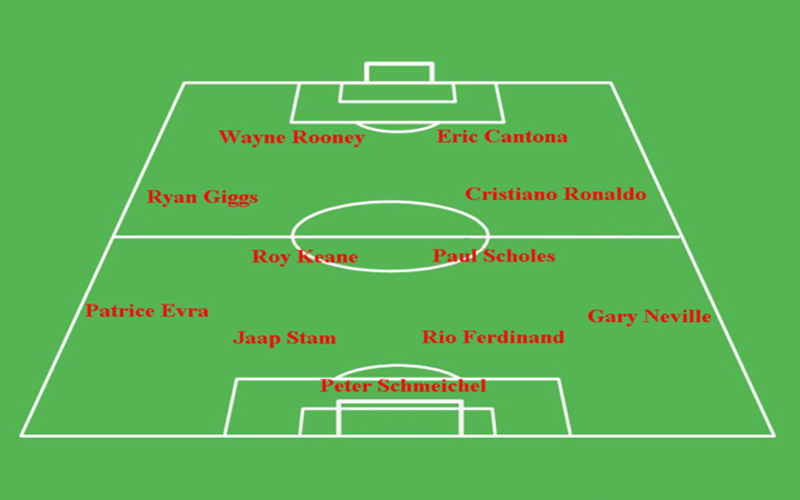 Trong thời kỳ hoàng kim của mình, đội bóng nước Anh đã khai thác tối đa sức mạnh của 4-4-2. Những tên tuổi như Roy Keane, Paul Scholes, Ryan Giggs hay David Beckham đã tạo nên tuyến giữa linh hoạt và mạnh mẽ, trong khi Dwight Yorke và Andy Cole phối hợp hiệu quả ở phía trên.