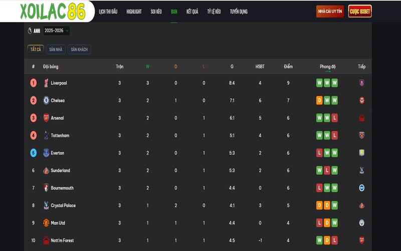 Tỷ số trực tuyến, bảng xếp hạng, kèo nhà cái chính xác